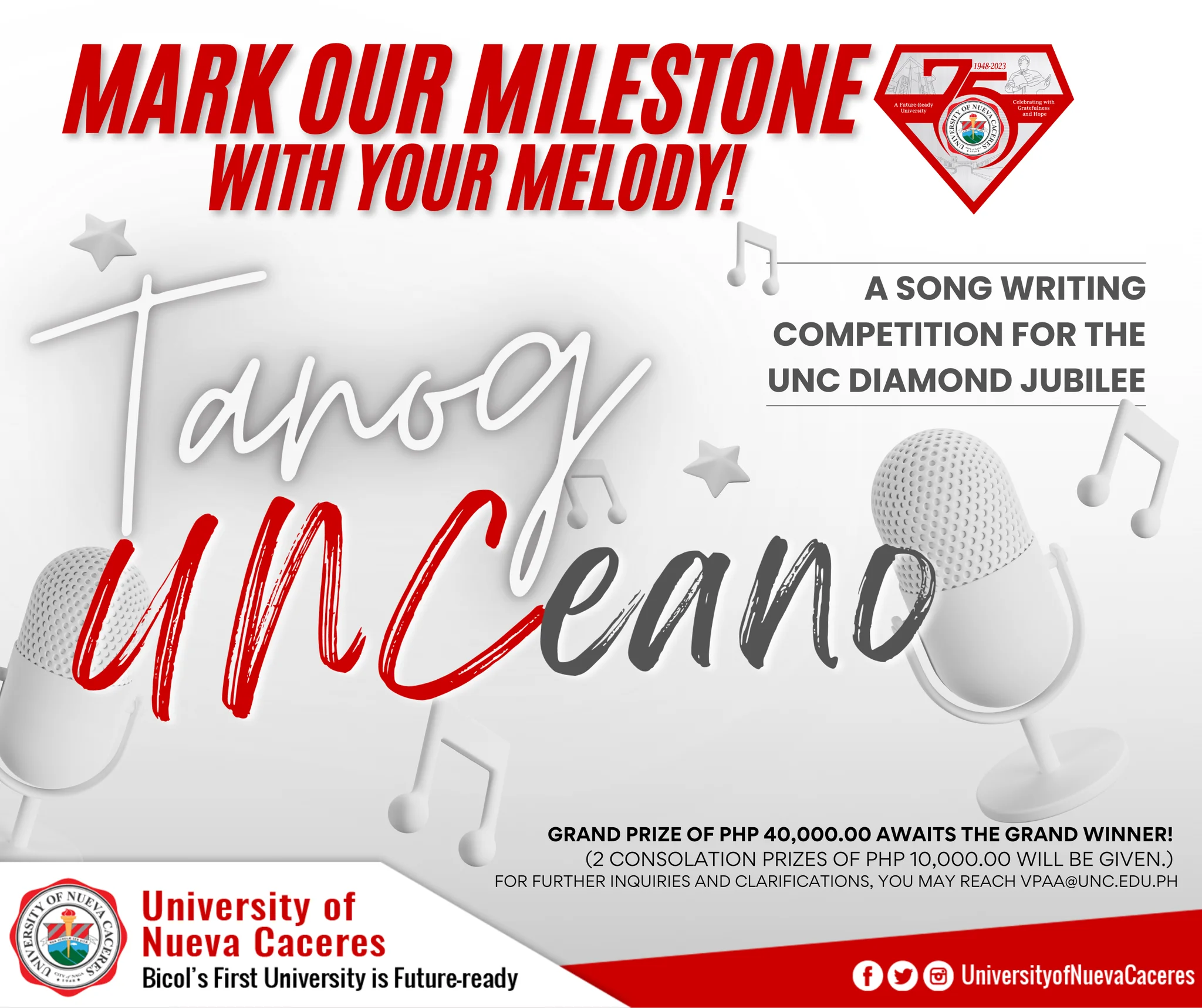 The University of Nueva Caceres shall celebrate the Diamond Jubilee with appropriate grandeur to manifest gratefulness and hope.
