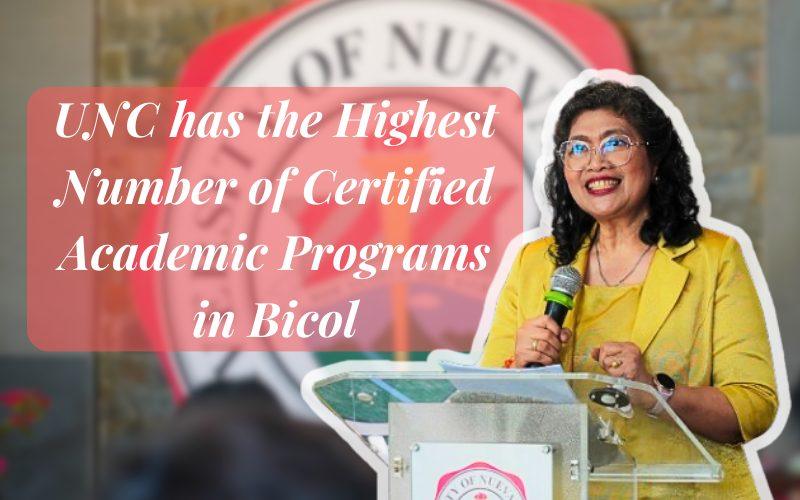 The University of Nueva Caceres, being the school with the highest number of accredited and certified programs in the Bicol Region – for two consecutive years has just set the winning tone, winning pace, and winning rhythm for a good start this 2024. At the helm of all these inspiring initiatives and impressive innovations is UNC’s Captain and Commander-in-Chief, Dr. Fay Lea Patria M. Lauraya, assisted by the Vice President for Academic Affairs, Dr. Romeo M. Sumayo Jr., and UNC’s top Leadership Team. As we march with a mission and continue our quest, we are future-ready to conquer uncharted territories. God is with us.