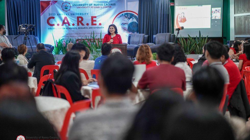 The University of Nueva Caceres successfully held the Annual University C.A.R.E. – Colloquium on Academics, Research, and Extension on December 7, 2023, at the UNC Social Hall. UCARE was made possible through the collaboration of the Office of the Vice President for Academic Affairs headed by Dr. Romeo M. Sumayo Jr., and the Office of the Vice President for Research, Extension, and Linkages headed by Engr. Christine Bautista. This year, we are bannering the theme: Caring for the community through outcome-based education (OBE) and sustainable development solutions.