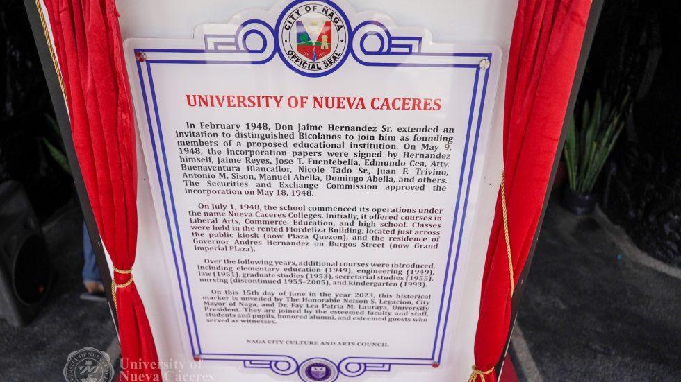 1948 marks the Charter Anniversary of Naga City and the birth of the University of Nueva Caceres. Together, Naga City and UNC journeyed and ushered in their Diamond Jubilee this 2023. As Naga City celebrates its Charter Anniversary, it presented and gifted UNC with a Local Historical Marker. The City of Naga is the seat of good local governance while the University of Nueva Caceres is home to quality education in the city. With a shared spirit, common culture, collective vision, and combined aspirations, LGU-Naga and UNC shall march with the mission of nurturing better tomorrows and expanding opportunities for all.