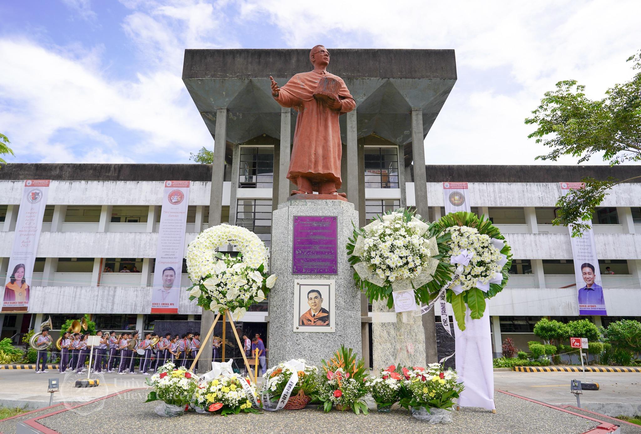 On the blessed and beautiful morning of July 11, 2023, the University of Nueva Caceres celebrated Founder’s Day, the historic commemoration of the 131st birth anniversary of Dr. Jaime Hernandez, Sr., UNC’s distinguished Forerunner, Founding Father, and First President. Before the historical iconic Founder’s Monument, popularly known as “Lolo Brown”, the UNC Community shared a rejoicing spirit as we memorialize his memory and immortalize his inspiration, at the sweet summit of the University’s great, grand, and glorious Diamond Jubilee this 2023. The students, faculty, non-teaching staff, parents, alumni, the leadership team and administration, and all the members of this illustrious institution, the University of Nueva Caceres, joyfully gathered to celebrate Don Jaime’s life, love, leadership, and legacy.