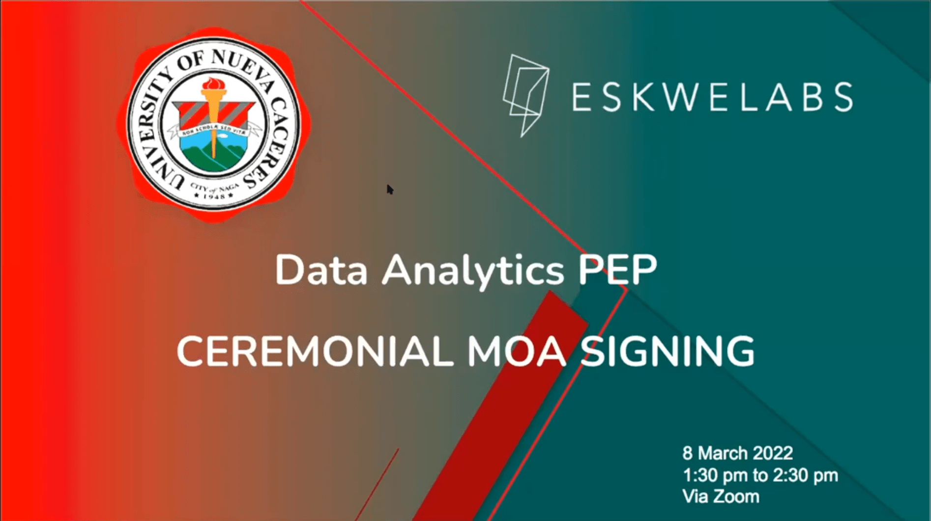 Eskwelabs, an online data upskilling school for people and teams in Southeast Asia, and the University of Nueva Caceres (UNC) publicly announced on March 8, 2022 the launch of a Data Analytics program via UNC’s Professional Employment Program (PEP). This new online program will be offered to graduating students of UNC’s College of Education to improve their employment outcomes through data upskilling.