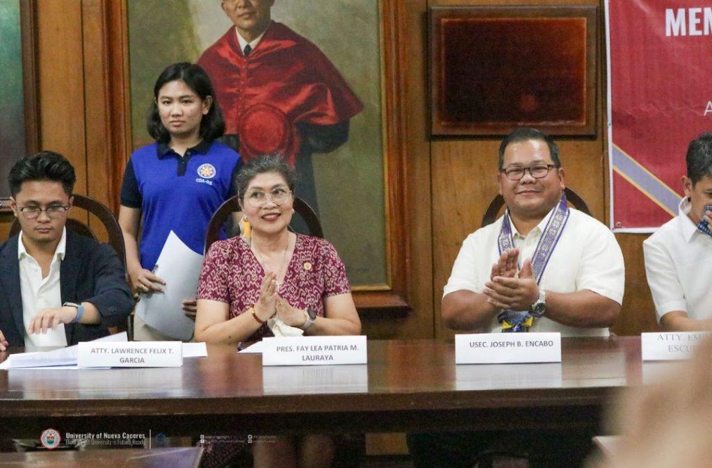 “Rest assured, USec Encabo, that the University of Nueva Caceres, both on a personal and professional, as well as its meaning as a University in terms of its motto, will bring the University closer to the communities through this partnership. With greater understanding of the law, there will also be greater economic and human rights progress,” President Fay said in closing.